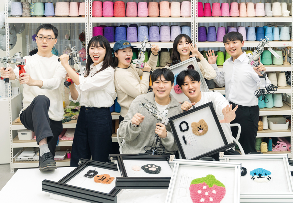 모든 작업이 끝나고 한자리에 모아놓은 완성작을 바라보는 표정들에 뿌듯함이 가득하다. 복슬복슬한 털실의 감촉에 마음까지 포근해진다는 동기들! 두 시간의 도전 끝에 이들에게 남은 건 키링만이 아니다. 터프팅 털실처럼 30년 정년까지 똘똘 뭉쳐 다니자는 약속, 터프팅 털실처럼 이어진 우리 사이가 앞으로의 회사생활을 따숩게 지탱해줄 거란 믿음이 한 겹 더 두터워졌다.