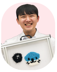 작업은 작은 면부터 시작해 바깥으로 채워나가는 방식으로 진행됐다. 도안의 윤곽을 먼저 잡고, 안쪽을 채운 뒤 색을 바꾸며 디테일을 더한다. 터프팅의 재미는 결과가 바로 눈에 보인다는 점이다. 실을 쏘는 즉시 캔버스 반대편에 복슬복슬한 그림이 수놓인다. 동기들의 관심을 한 몸에 받았던 이강문 부기관사의 야심작도 시시각각 모습을 드러냈다. “다들 오해하고 있는데, ‘보노보노’ 아니에요! 여자친구 고향인 진주의 마스코트 캐릭터 ‘하모’랍니다. 작업하던 면이 사실 뒷면이라는 걸 나중에 알고 깜짝 놀랐는데요. 생각보다 간단하고 재밌어서 여러 가지 도안으로 더 만들어보고 싶네요!”